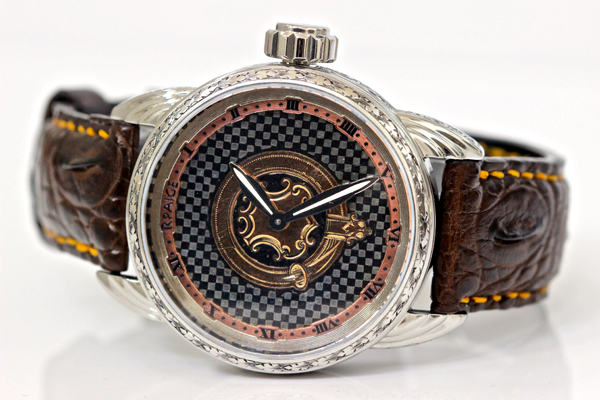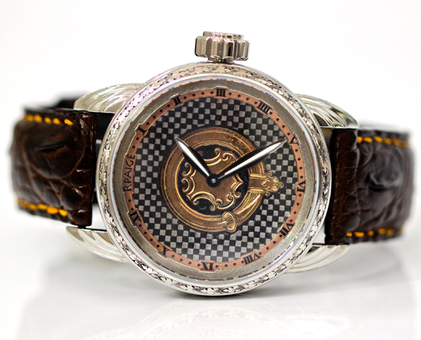 This watch is Sold Vintage Waltham USA 19 jewel movement from 1919 case: Steel with Convex sapphire crystal front, diamond coated glass display back. Water Resistant to 50 meters (150 feet). Rpaige Logo crown. Numbered #1/50 on the back of the case. This is a one of a kind watch. This case is all hand…